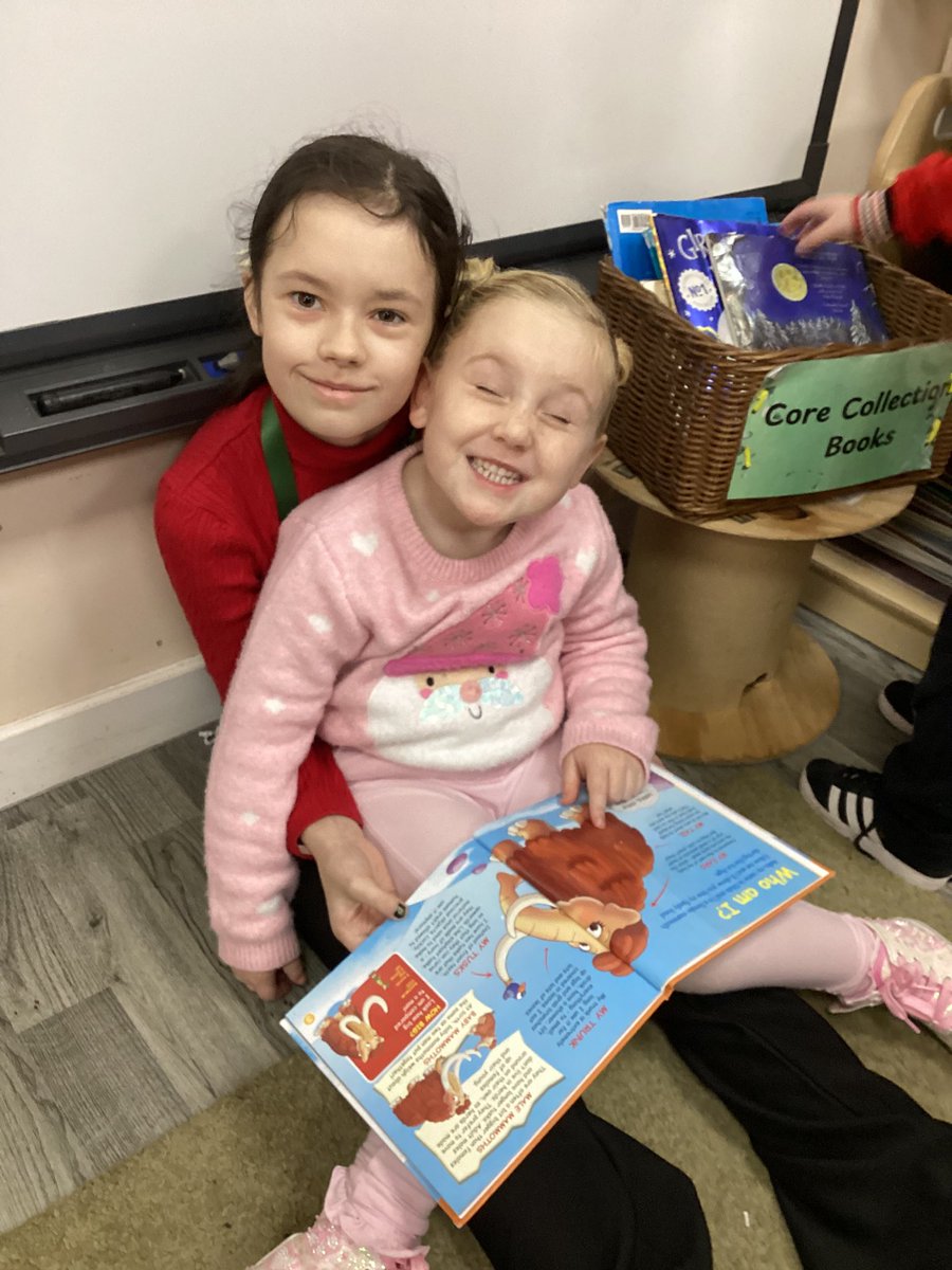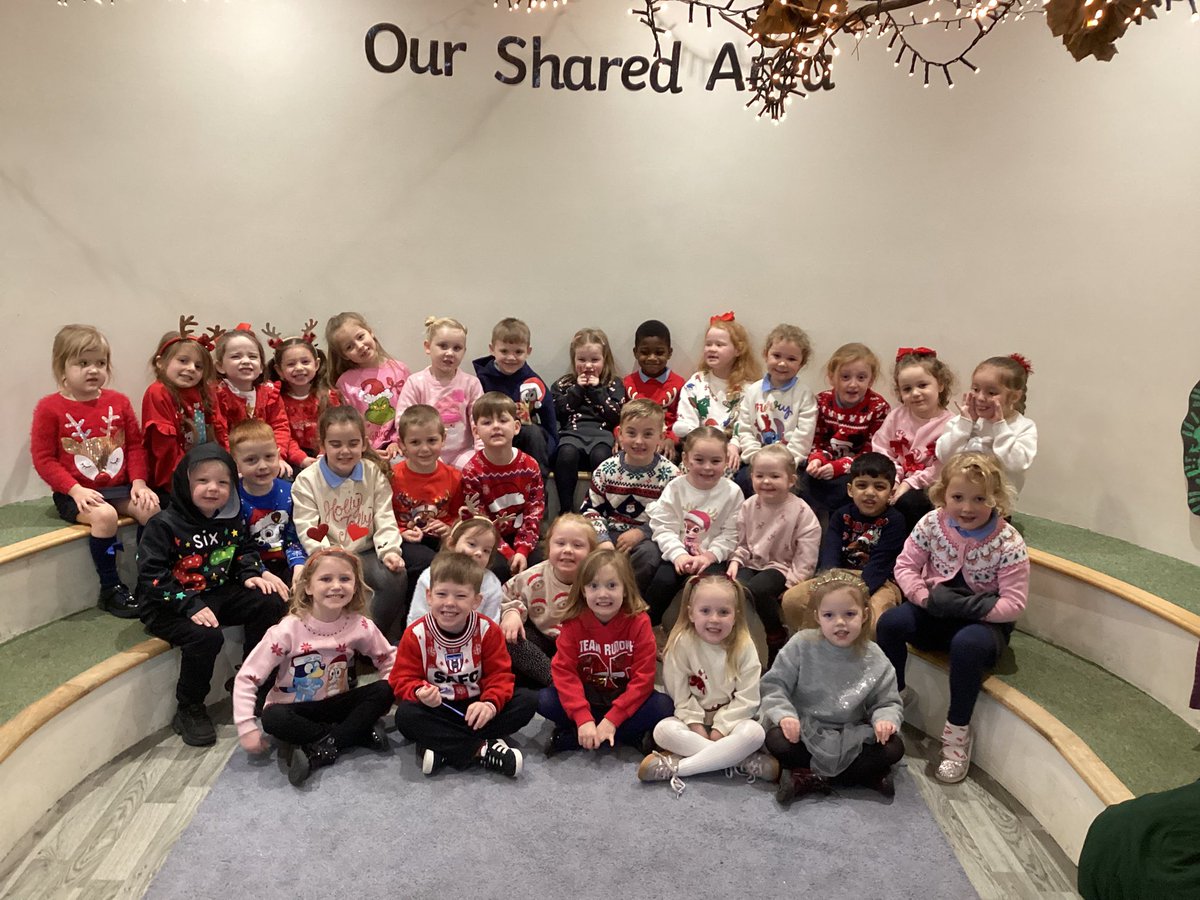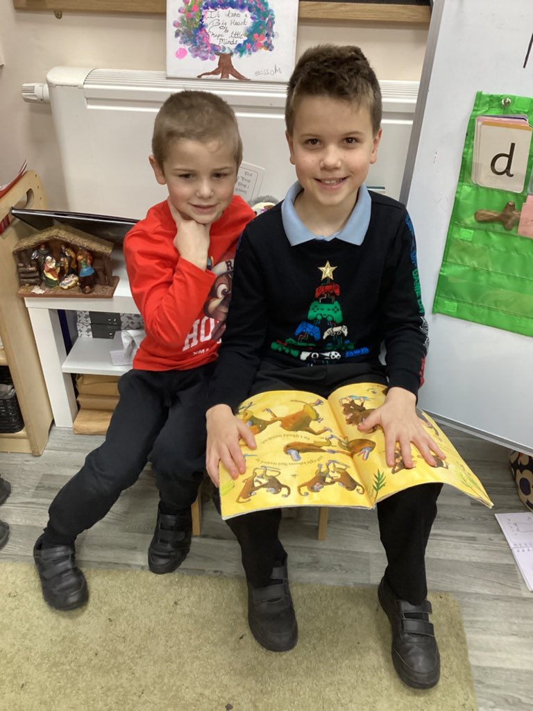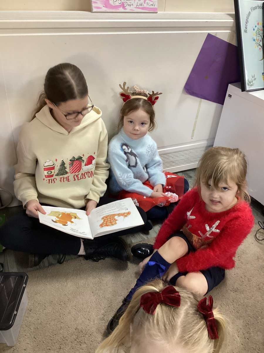 Buddy time in Reception for Christmas jumper day 🎄🎄